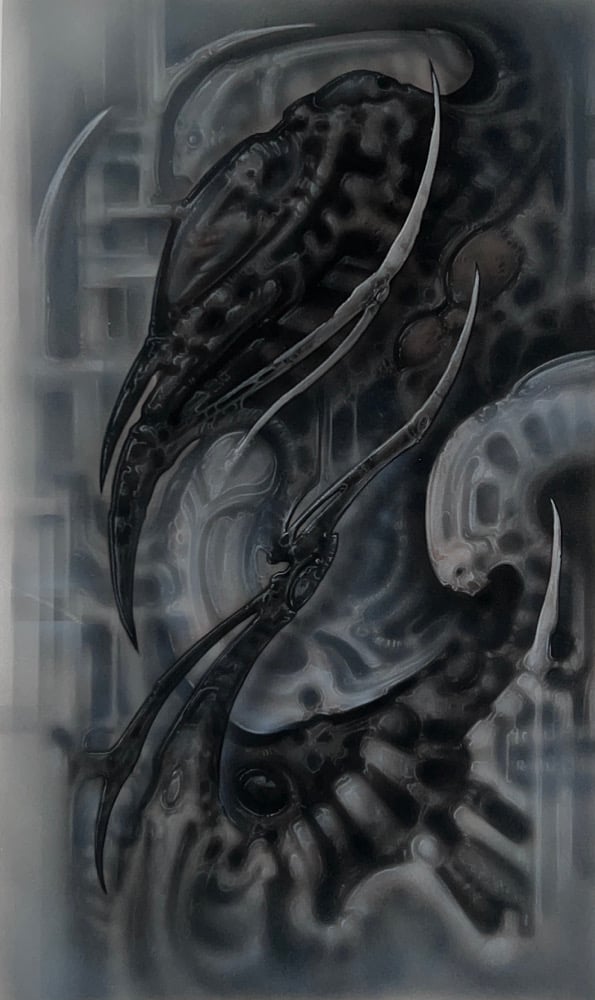10 1/2 by 19 inches airbrush on Bristol board paper with color pencil highlights. This painting is unframed. Does not come with a frame.